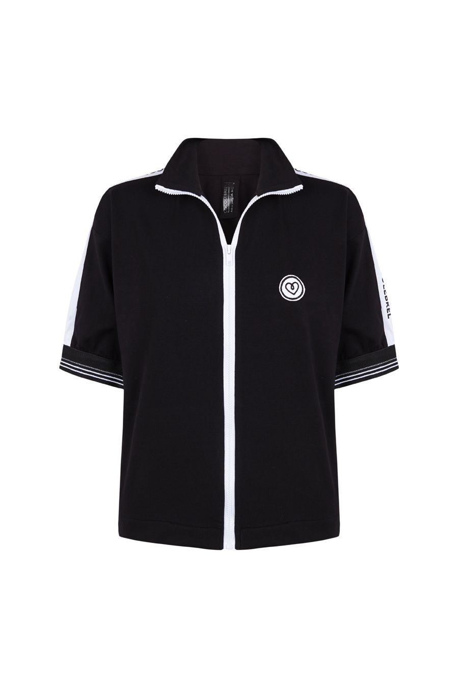 Decorada con bandas blancas con mini logos Cocolebrel  y mini bordado corazón en el pecho. Maxi cremallera blanca inyectada y muy resistente. Tiene dos bolsillos en los laterales.