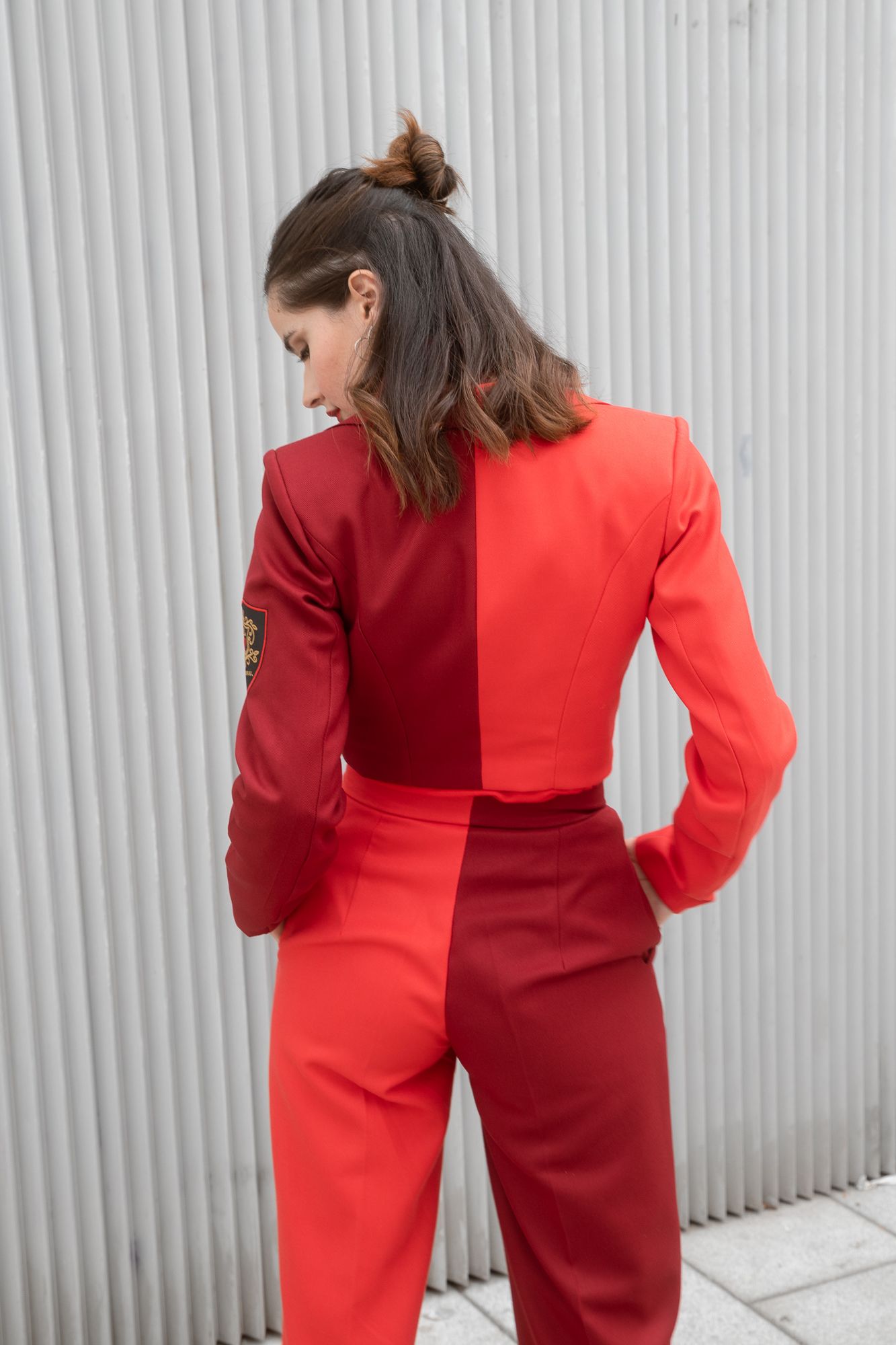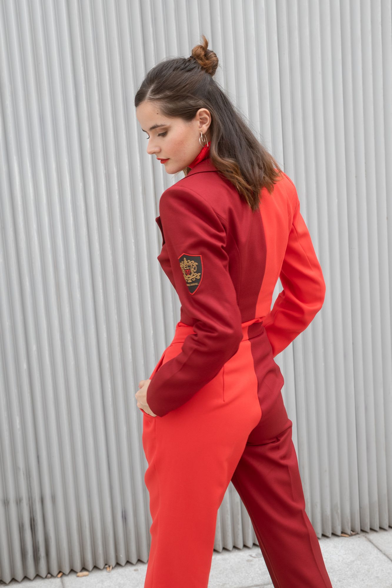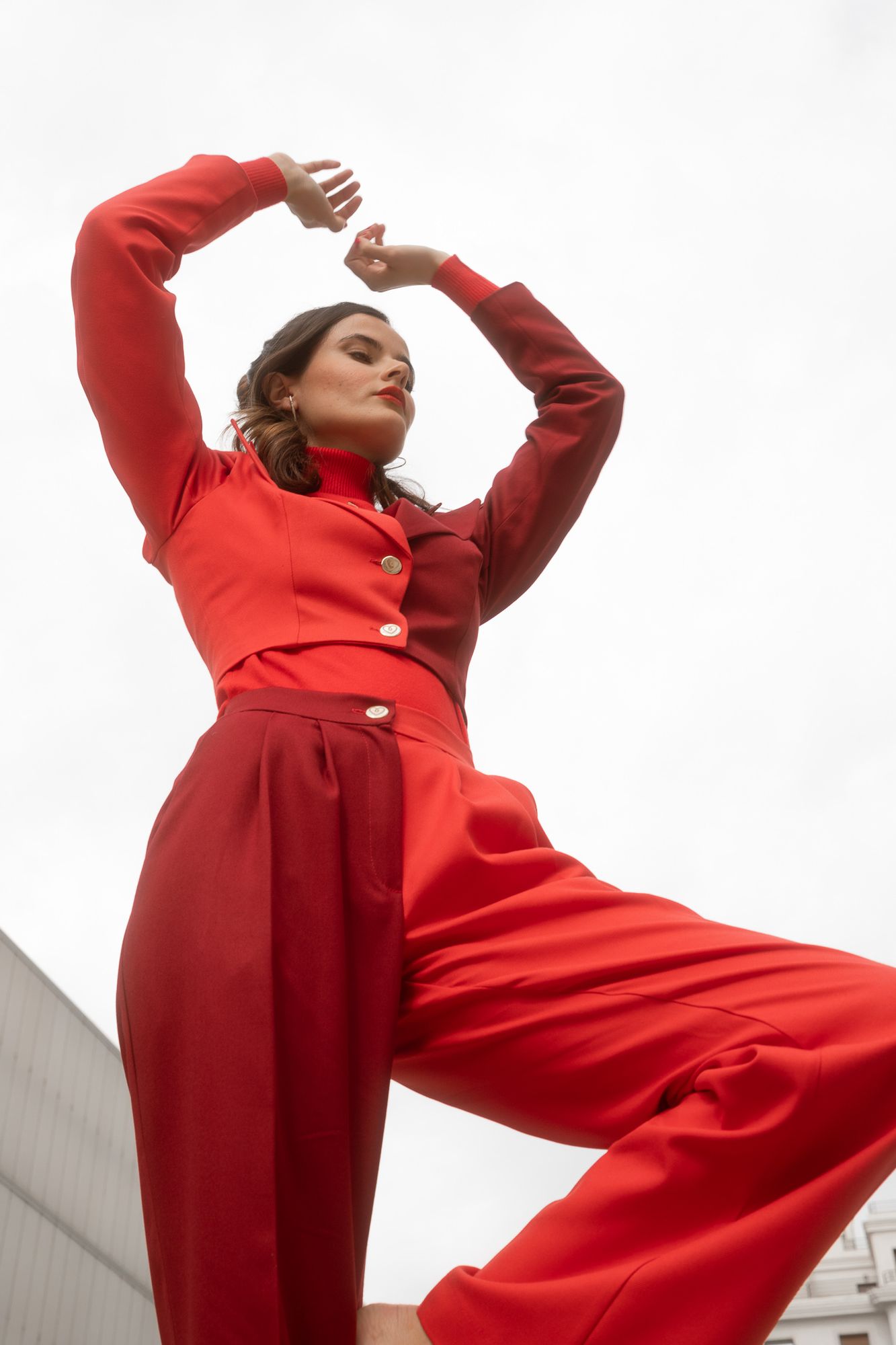 Chaqueta tipo torera de diseño exótico y arriesgada. Hemos combinado nuestro rojo más rojo con una nueva incorporación a la happy family: el granate. ¡Nos encanta el restulado!