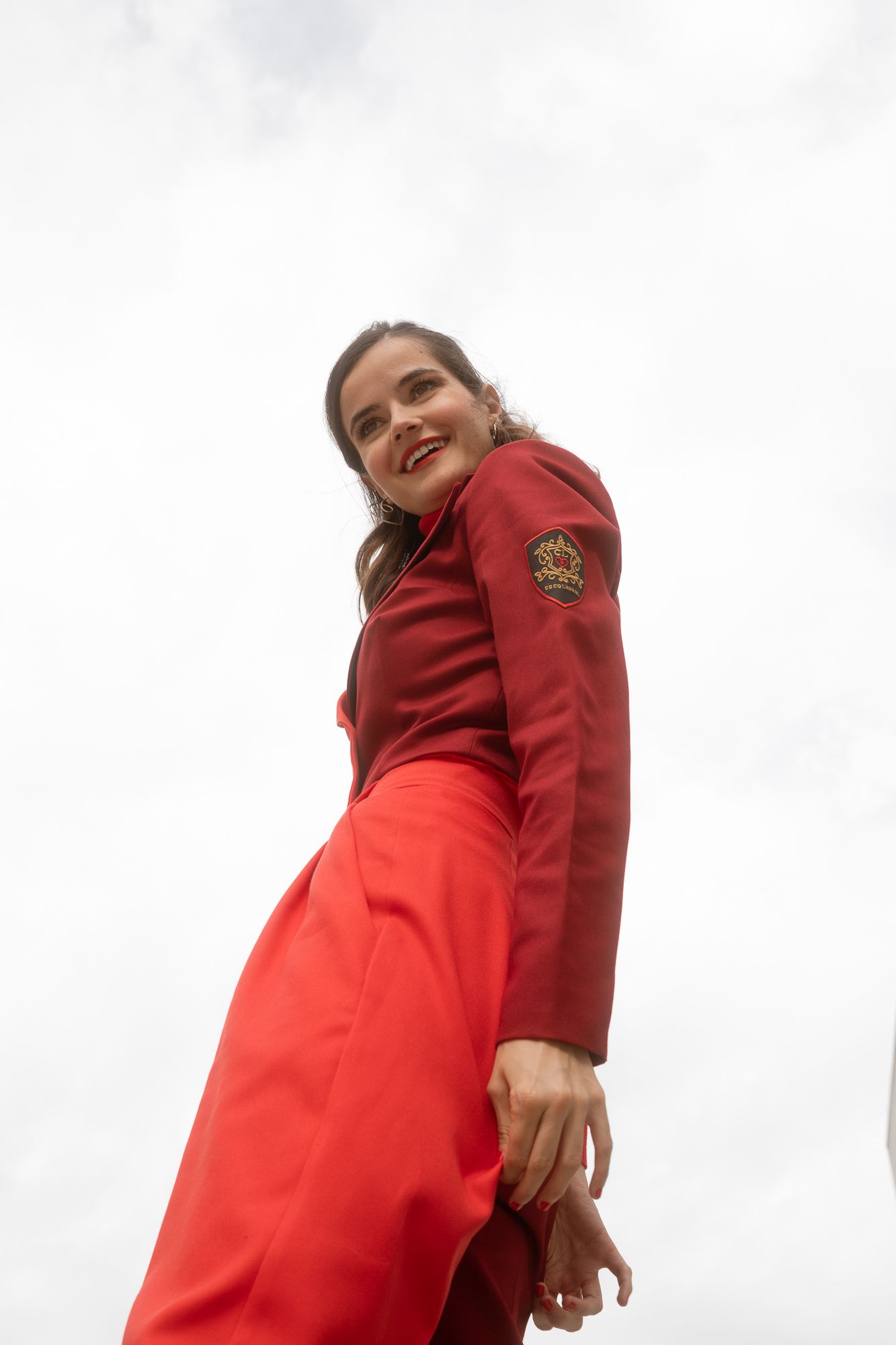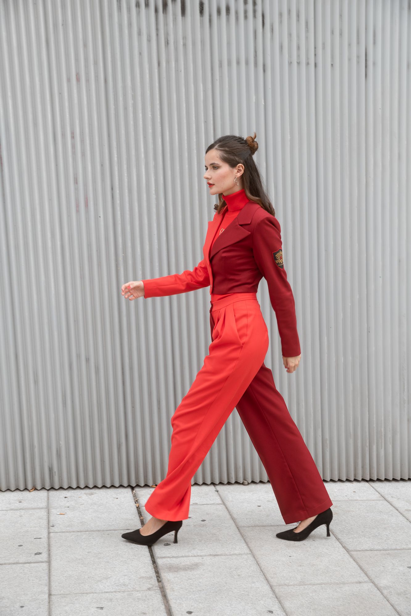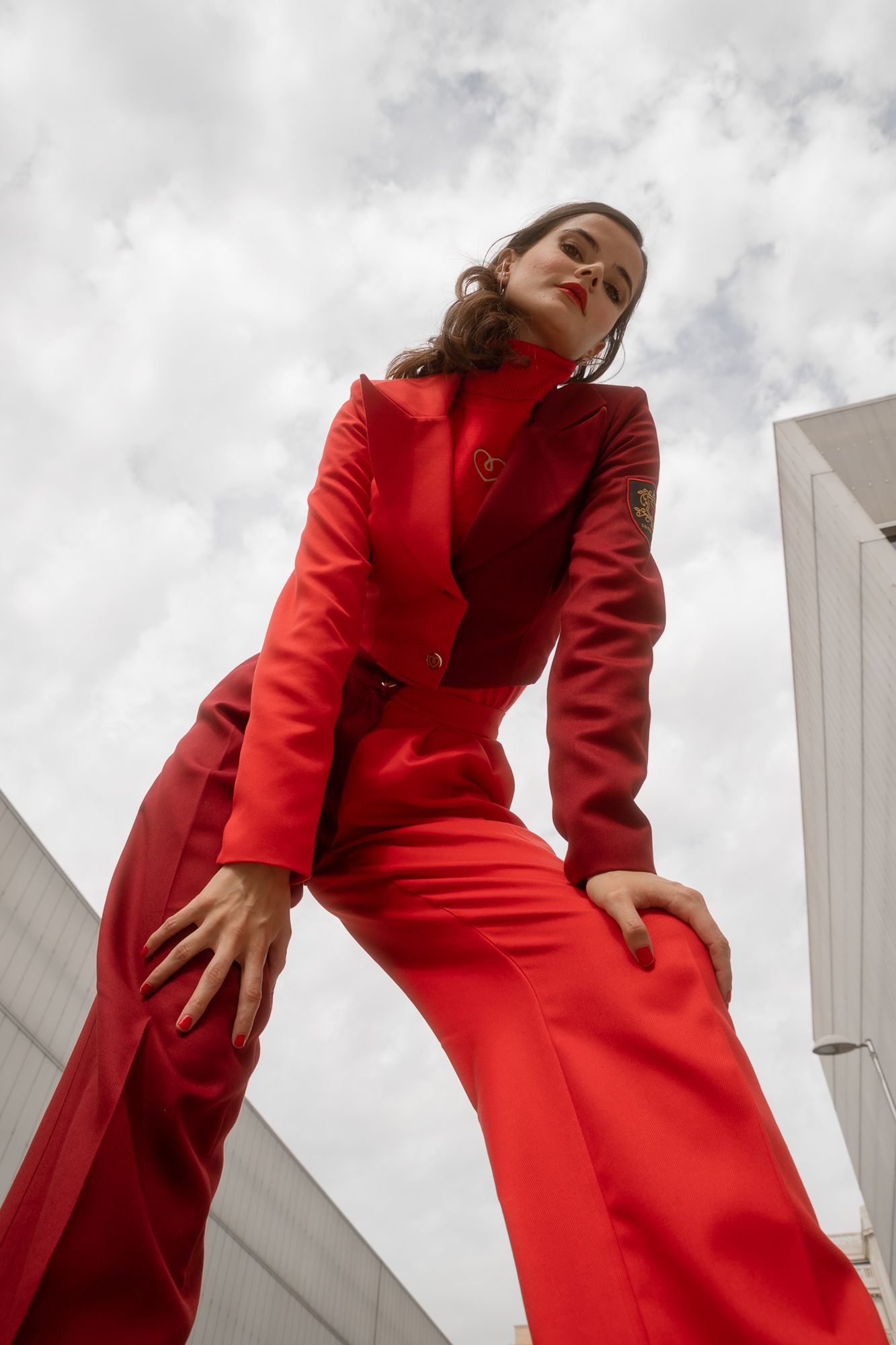 Chaqueta tipo torera de diseño exótico y arriesgada. Hemos combinado nuestro rojo más rojo con una nueva incorporación a la happy family: el granate. ¡Nos encanta el restulado!