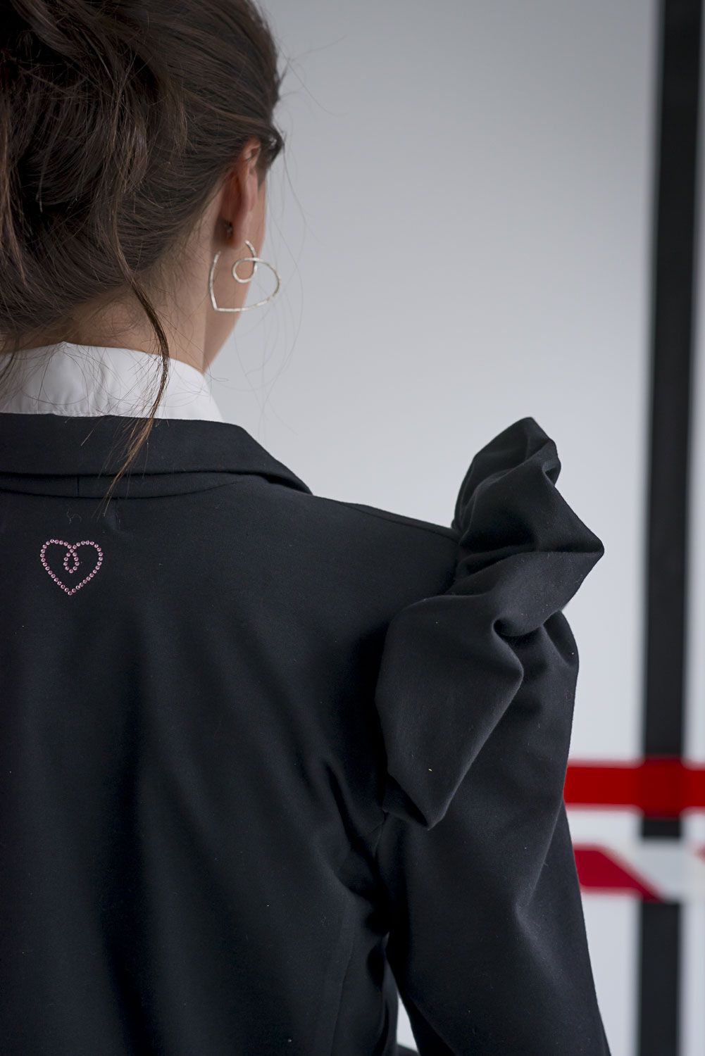 Chaqueta tipo torera confeccionada en un tejido de algodón tipo sudadera súper suave, gustoso y de color negro, el color eterno por excelencia.
