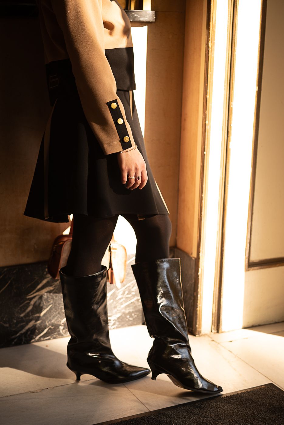 • Diseño bicolor en negro y beige, que estiliza la silueta.