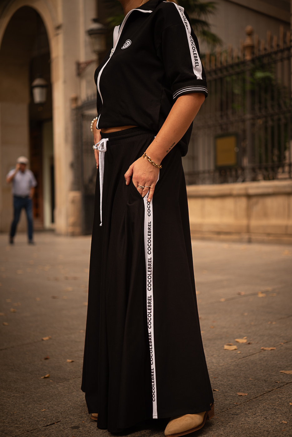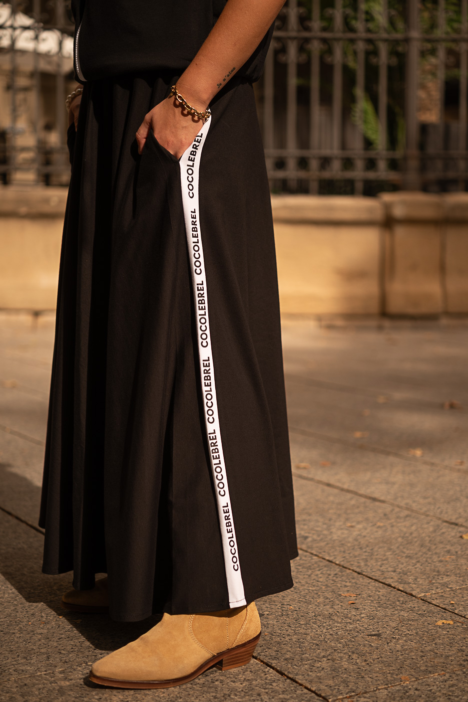 Falda larga negra larga efecto vaporoso felizmente confeccionada en ediciones limitadas en nuestro taller de Zaragoza.