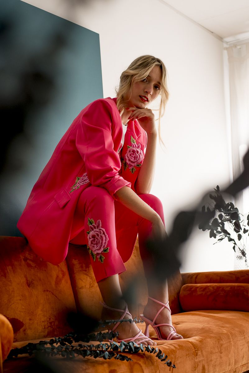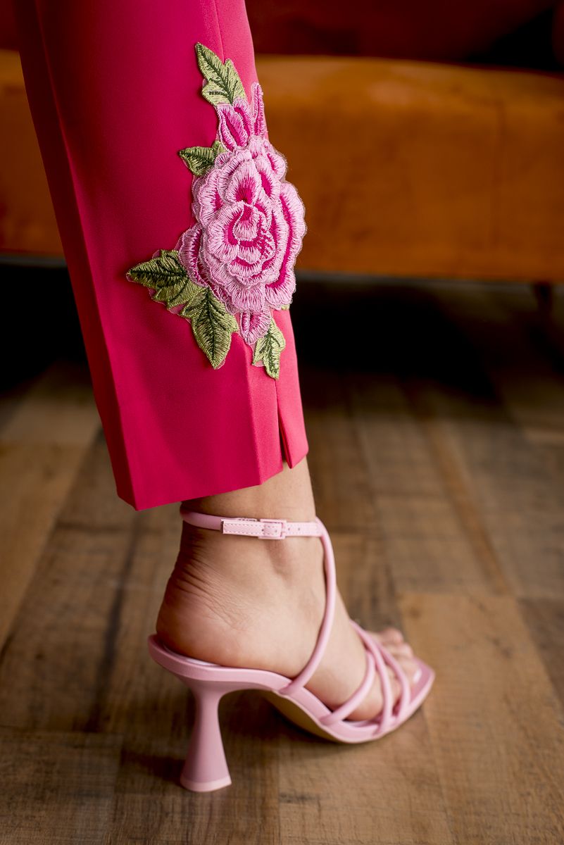 Pantalón color rosa con un ligero matiz coral, confeccionado en un tejido suave, sedoso y delicado que tu piel agradecerá.