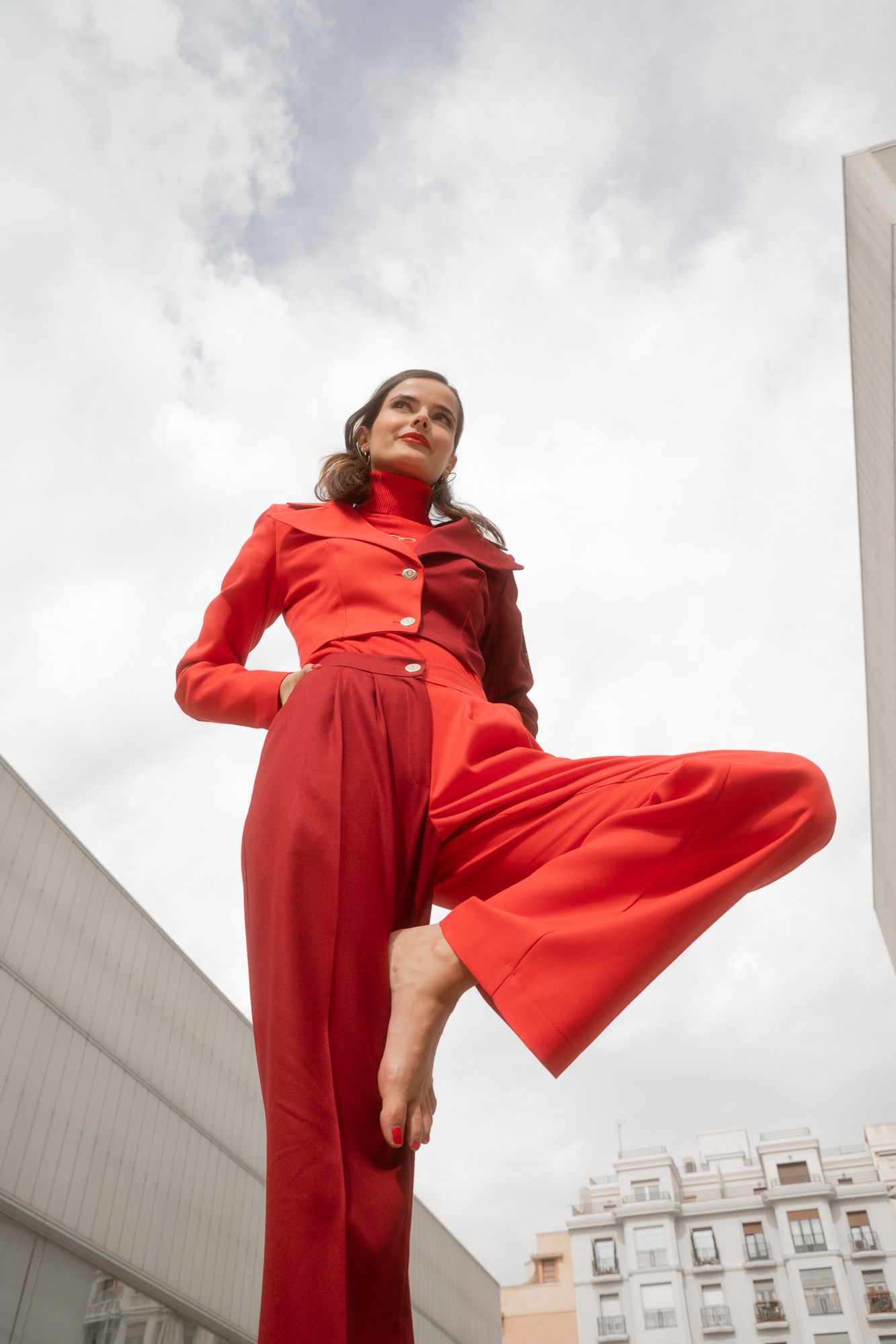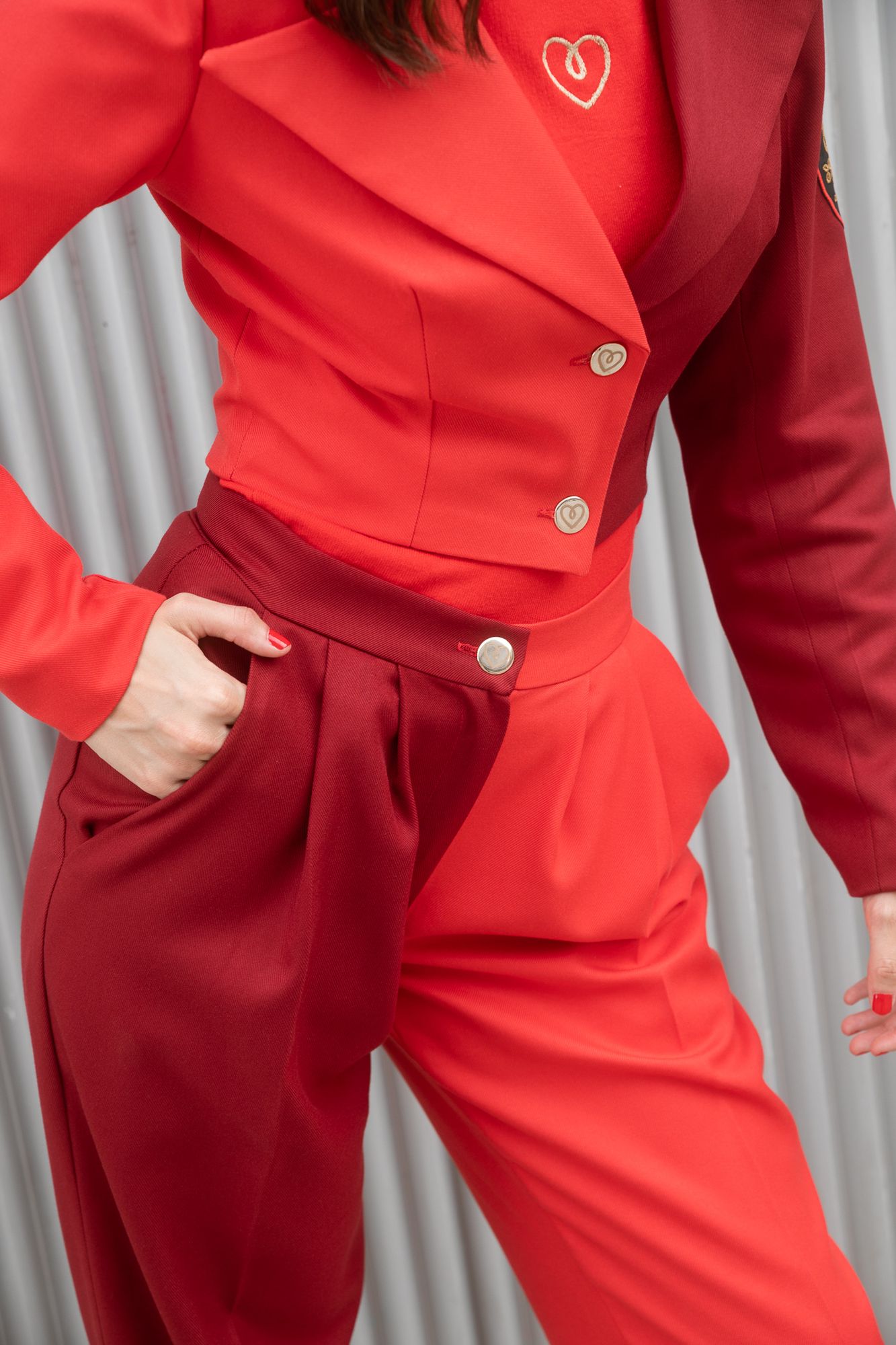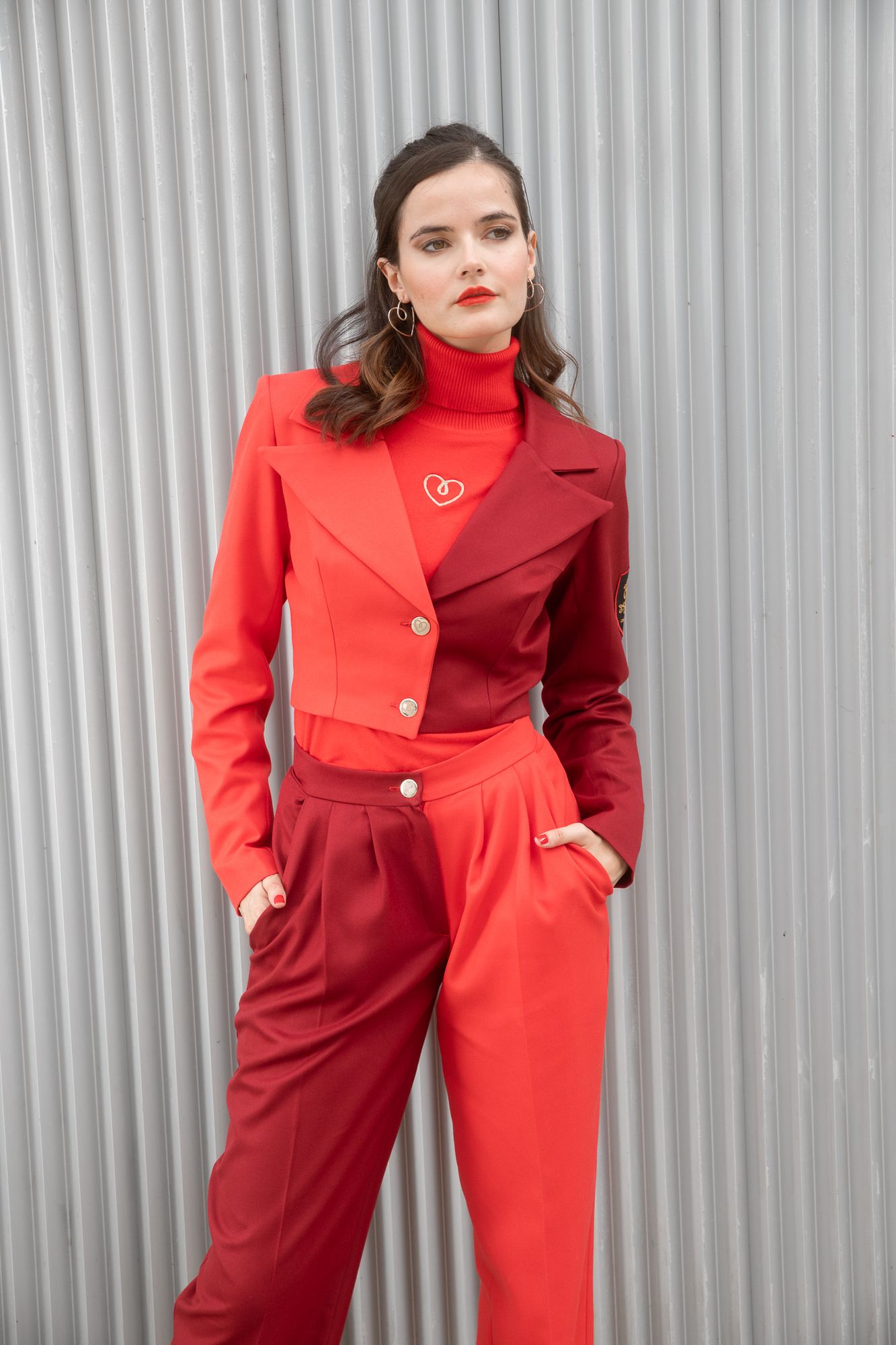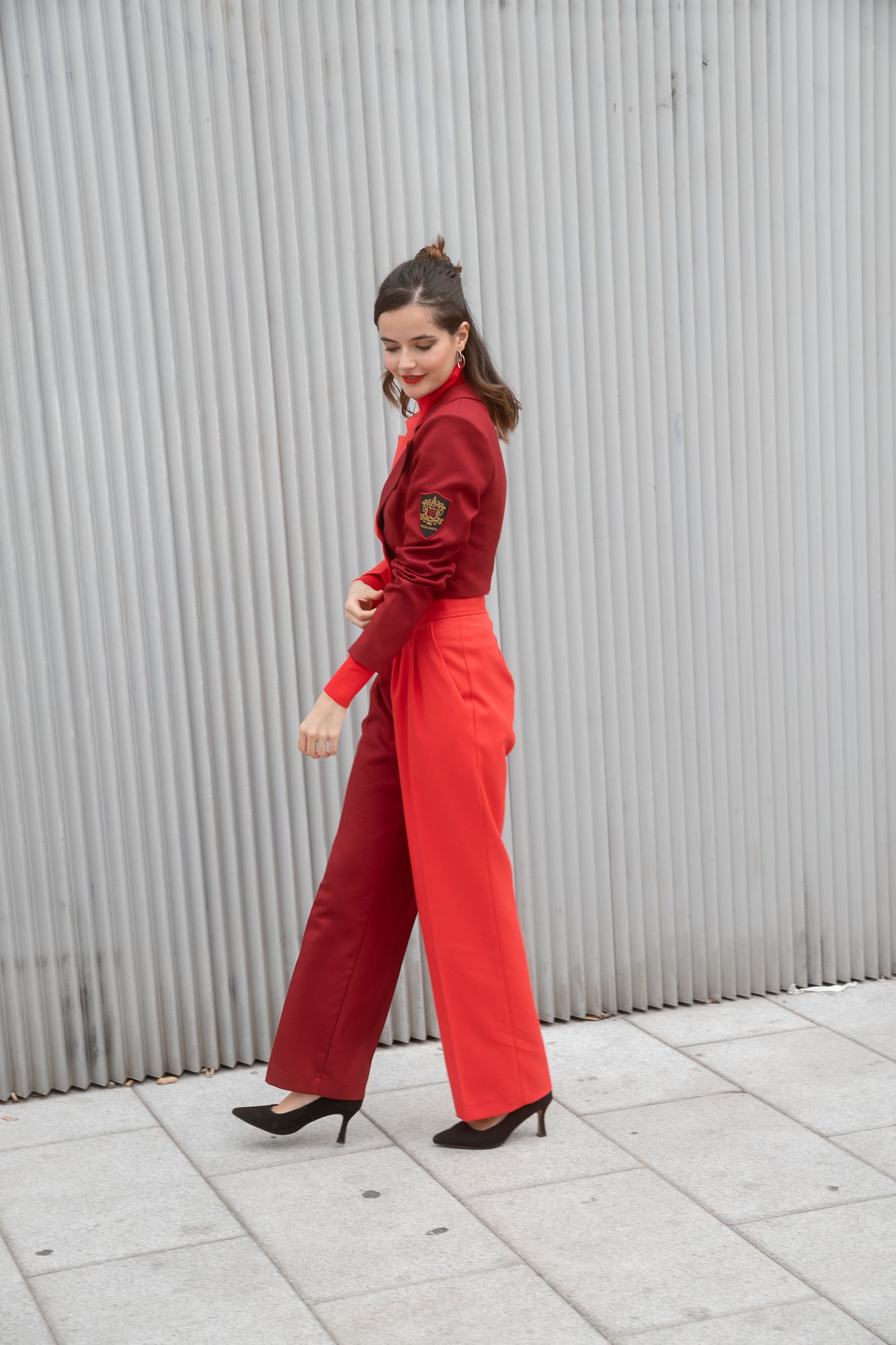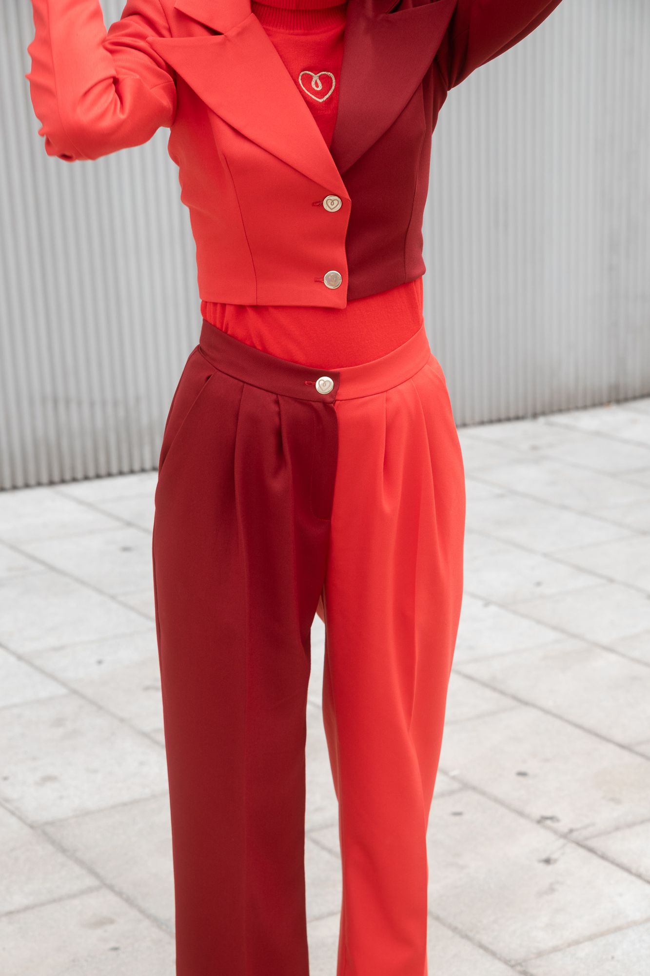Pantalón de pata ancha combinado en color rojo y granate. Una combinación de colores muy exótica. ¡Te encantará!