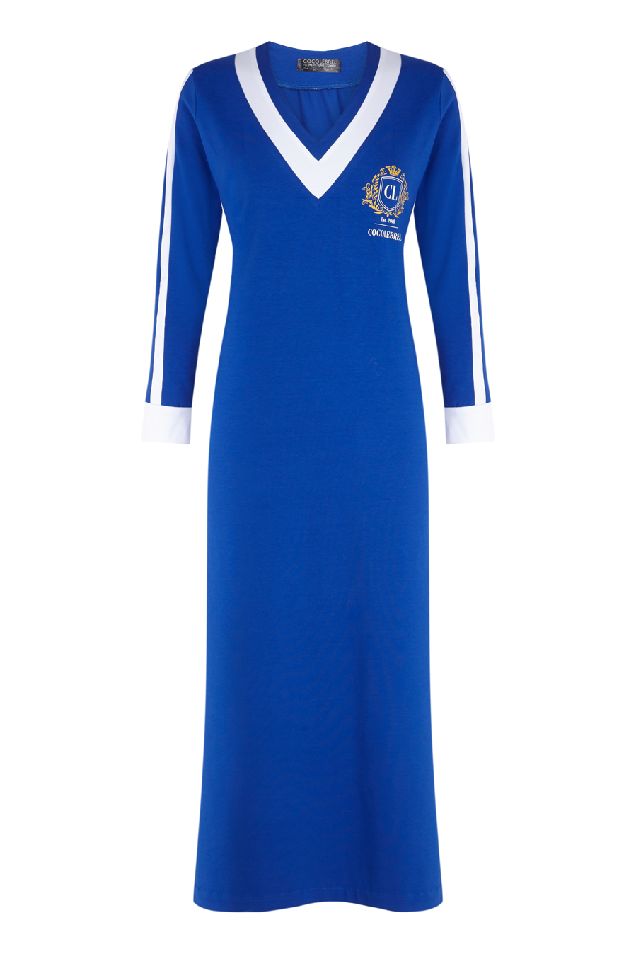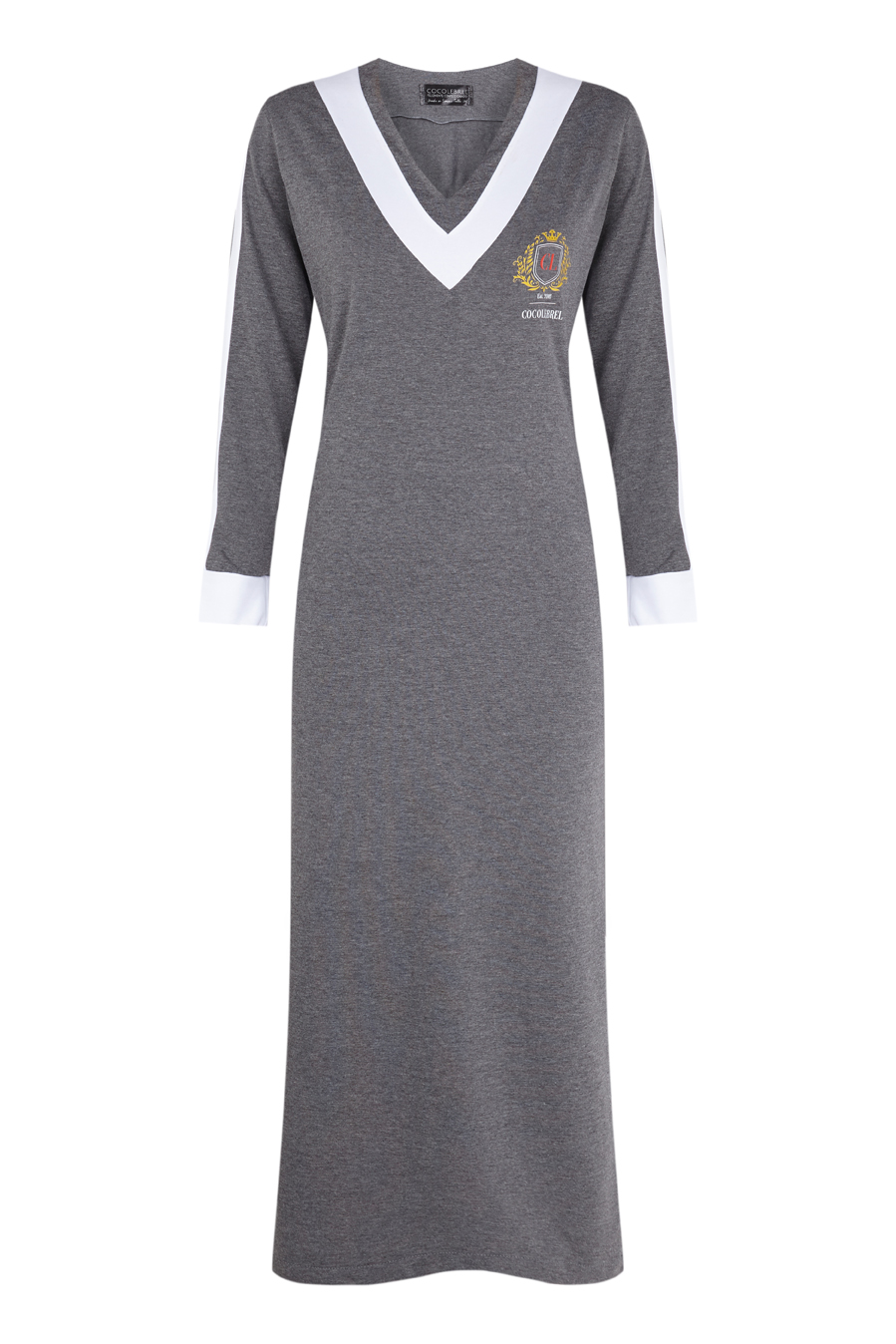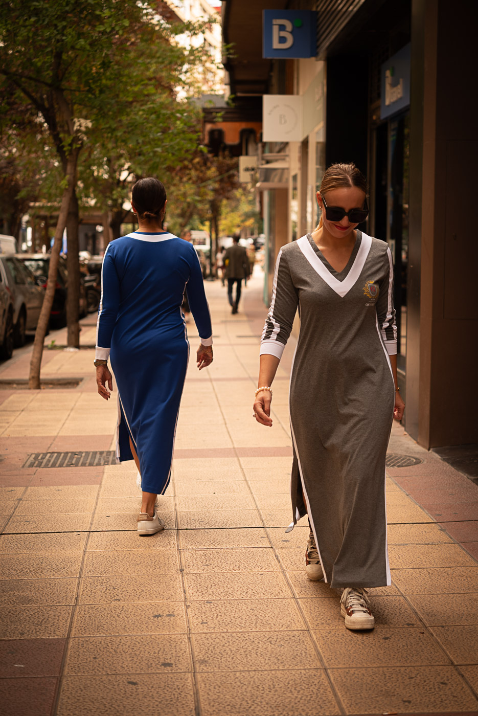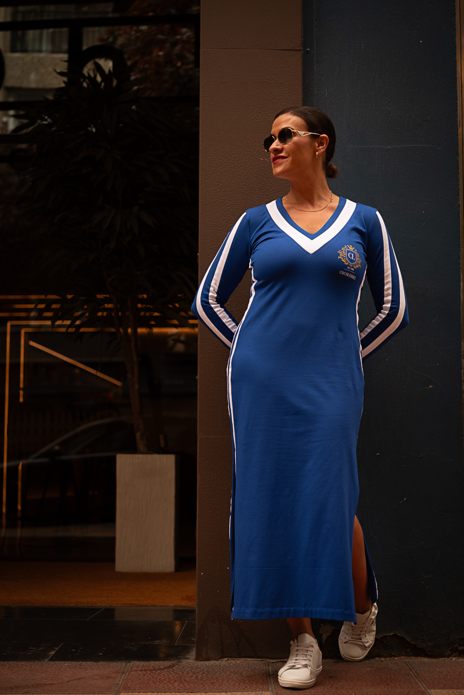 Vestido largo de manga larga y maxi cuello de pico.  De estilo casual chic que podrás elegir en color gris o azul Klein ¡PRECIOSO!